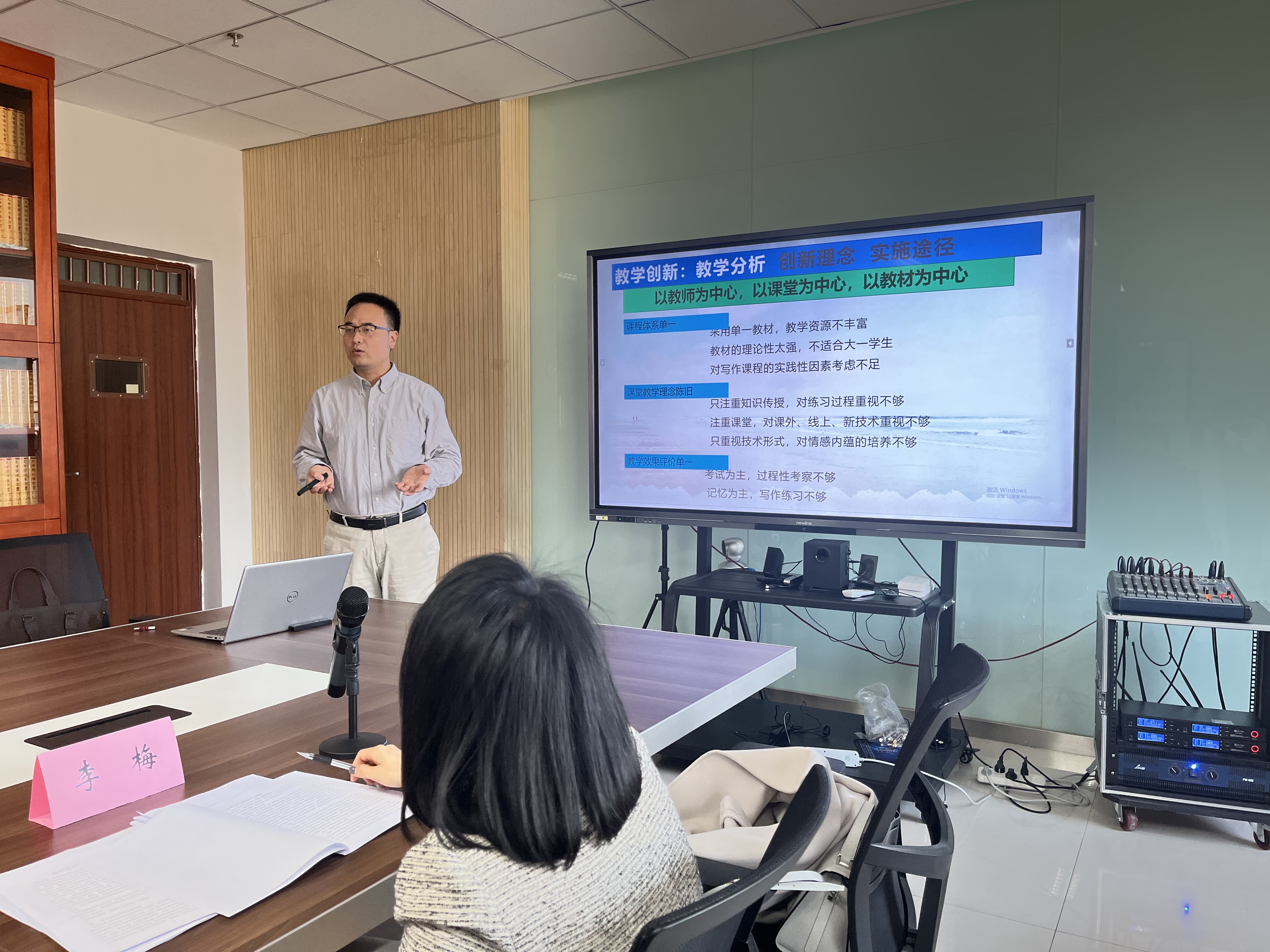 研讨会首先听取了白鸽老师《跨文化交际》、苏岑老师《基础写作》的课程创新汇报。与会专家就汇报做了点评和指导。随后,各位专家围绕自身参赛经验,对教师教学创新比赛的赛程、赛制及比赛重点做了详细的分析,对比赛各环节的注意事项给出了具体的建议和意见。76net必赢官网郭茜老师分享了自己参加省赛的心得体会,成明明老师分享了建设省级一流课程的经验。