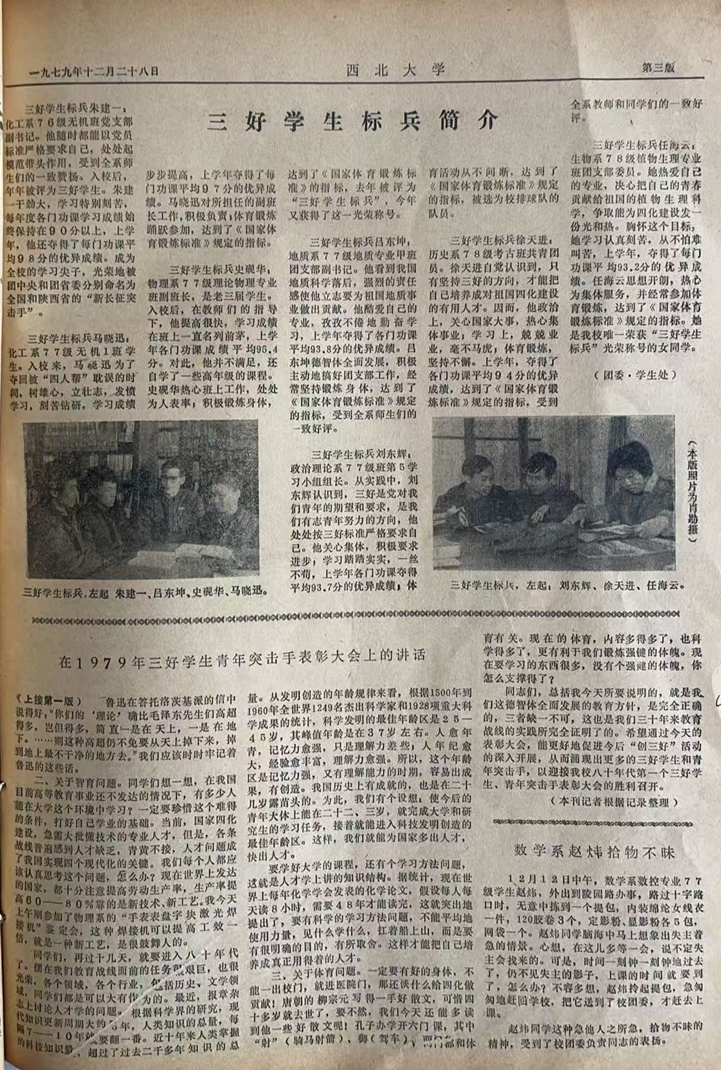 郭琦校长在1979年三好学生青年突击手表彰大会上的即席讲话